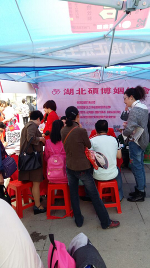 众诚婚介专业红娘现场为本、硕、博单身作爱情定制2015年4月25日,楚天金报情定漂流瓶,万人情缘会在武昌群光广场举行。众诚婚介搭建的本、硕、博相亲场地内热闹非凡,众诚婚介持证婚姻家庭咨询师们现场接待数百位优质单身相亲咨询,受理众多家长为子女征婚的意向,为他们现场打造和定制爱情。